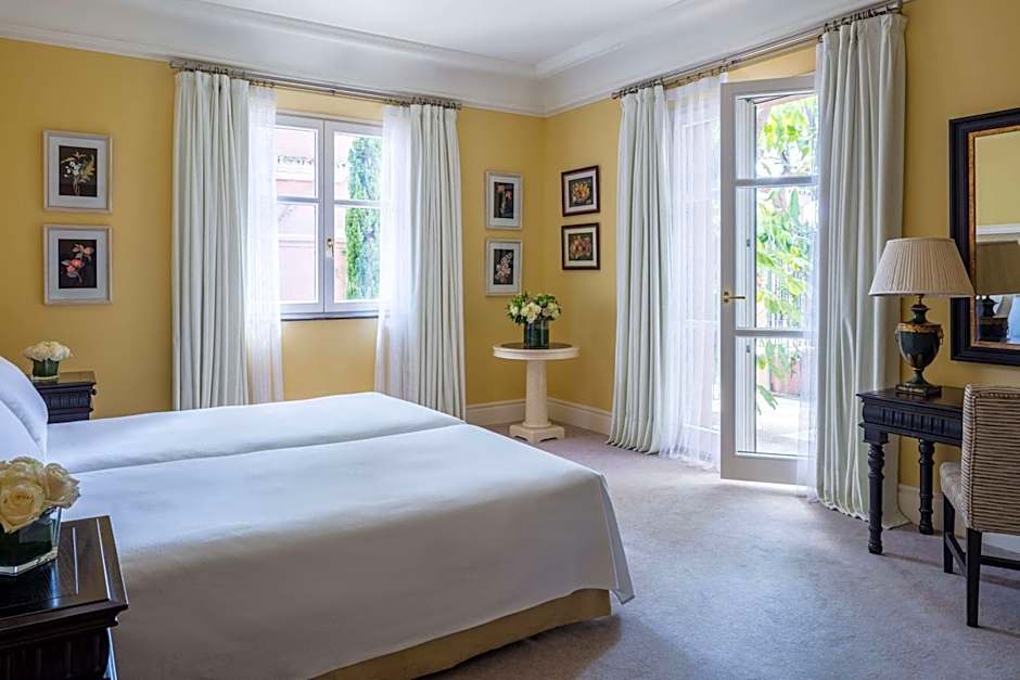 Deluxe Terrace Room is 377 square feet and includes either a king-size bed 150-183 width or 2 single beds 80-130 width plus terrace, desk, satellite tv , cable tv, hairdryer, tea and coffee making facilities , ironing set, safe, bathrobes, and slippers and is Wheelchair-accessible.